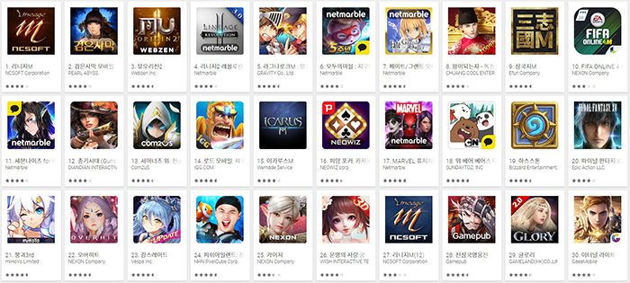 또 40위권에 위치했던 ‘킹스레이드’가 지난 16일 오픈한 특별상점의 영향으로 23위까지 순위가 급상승하는 모습을 보였다.