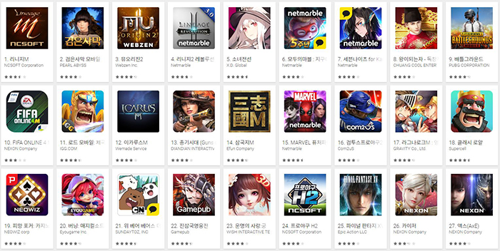 신작 게임도 순위권에 진입했다. 지난 21일 정식 출시된 MMORPG(다중접속역할수행게임) ‘버닝:매지컬소드’는 20위로 구글플레이 최고 매출 순위 상위권에 올랐다. 이 게임은 지난 주말에도 꾸준한 상승세를 보여 40위권에서 20위권까지 순위 상승했다.