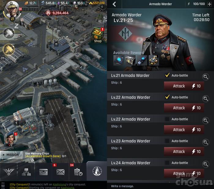 '건쉽배틀: 토탈워페어'는 무기들을 기본으로 전투기, 전차, 함선, 항공모함 등 육해공 무기들이 준비돼 있고 다양한 전투의 조합이 가능하다.