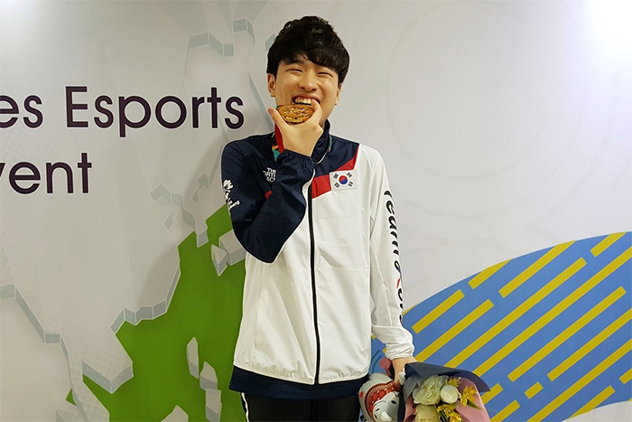 '스타크래프트2' 종목에서 금메달을 획득한 조성주 선수 = 출처 한국e스포츠협회 트위터