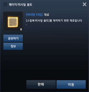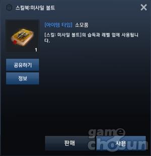 앞으로 성장 지원 상자에 포함되는 미사일 볼트 관련 소모품들 = 게임조선 촬영