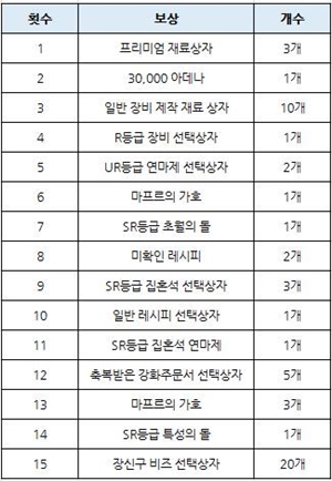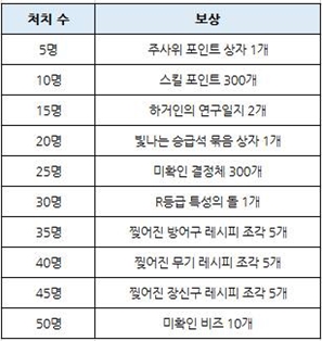 캠프파이어 완주 횟수에 따른 보상 목록 = 넷마블 제공