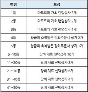 대난투의 처치 및 랭킹 보상 목록 = 넷마블 제공