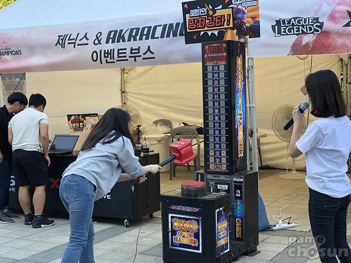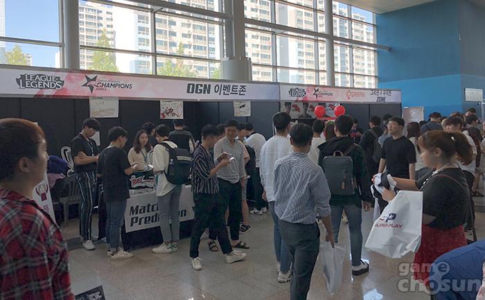 삼산월드체육관은 경기 시작에 앞서 ‘리그오브레전드’와 관련된 각종 현장 이벤트가 진행돼 관람객들을 맞이했다. 인형뽑기를 통해 상품을 획득하거나 챔피언 ‘뽀삐’를 주제로한 망치 아케이드를 설치해 점수에 따라 게임 스킨과 같은 상품을 제공했다.