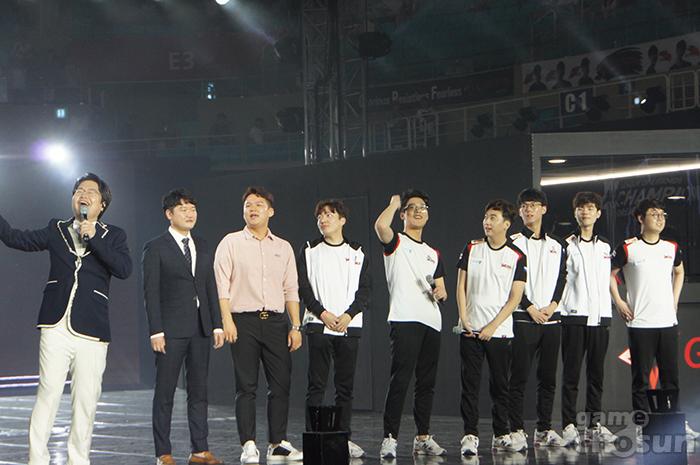 풀세트 끝에 우승을 차지한 KT롤스터 = 게임조선 촬영