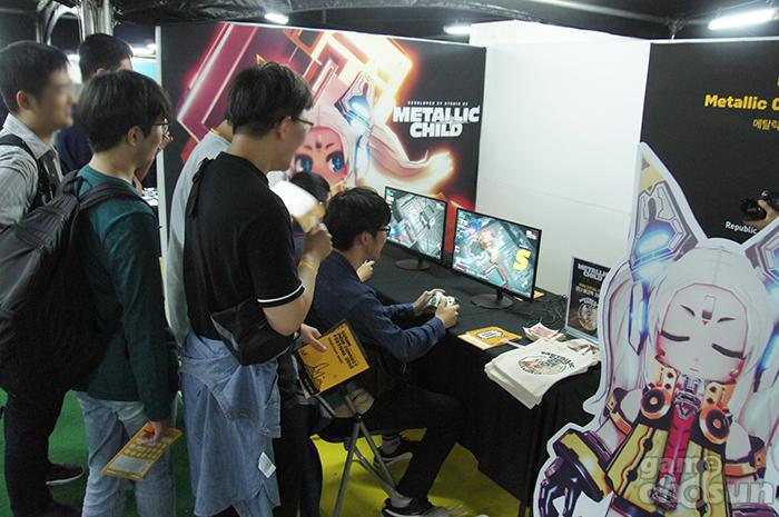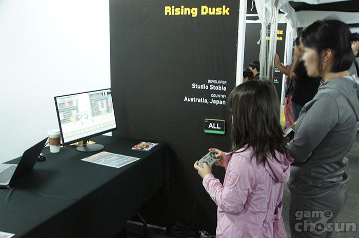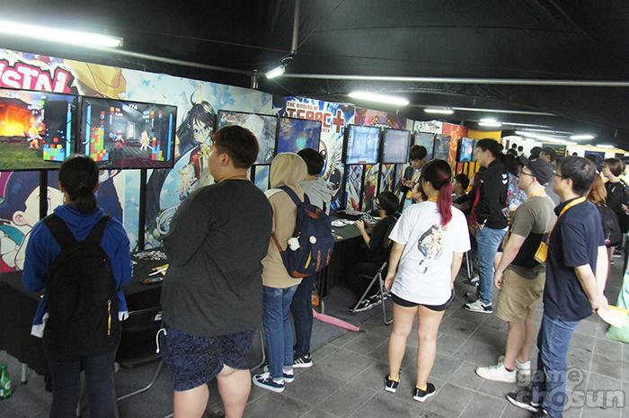 인디게임 중 인기를 모으고 있는 '던그리드' 시연대 = 게임조선 촬영