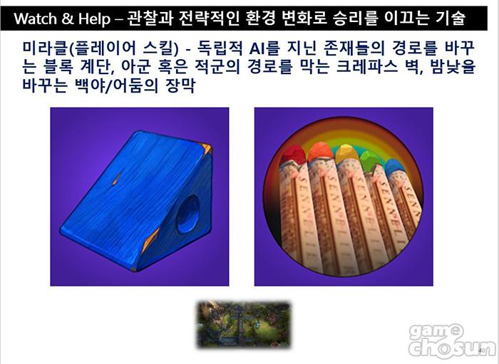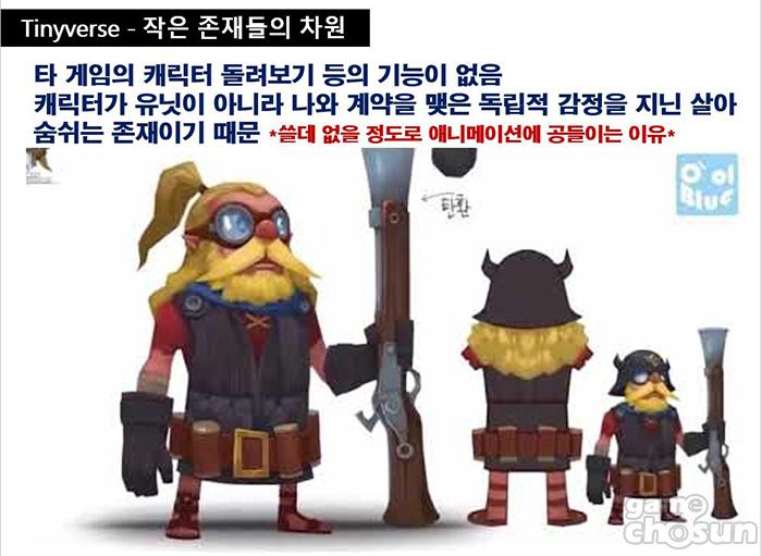 또 게임 내 작은 세계 ‘타이니버스’를 만들기 위해 오올블루는 각 캐릭터의 AI에 집중했다. 챔피언외에는 직접적인 영향을 미치지 못하는 트루퍼들이기 때문에 살아 움직이는 AI를 만들기위해 각 캐릭터마다 여러가지의 애니메이션을 구현했다.