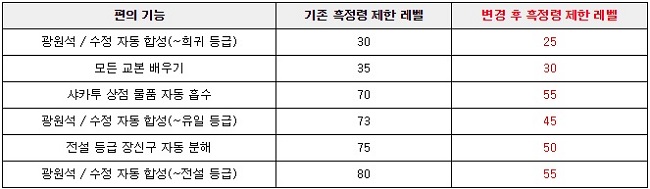 흑정령의 레벨에 따른 편의 기능 허들이 대폭 완화됐다. 펄어비스는 흑정령 레벨에 따른 편의 기능 오픈 제한이 유저들에게 부담으로 느껴진다고 판단, 일부 편의 기능의 제한 레벨을 하향 조정했다. 추가로 수련의 탑 입장 가능 흑정령 레벨이 사라졌으며 특수 토벌 또한 흑정령 레벨에 상관없이 이용 가능하다.