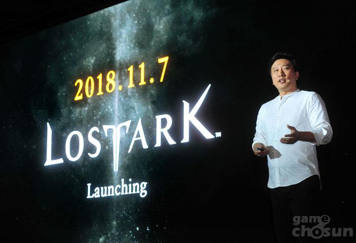로스트아크 론칭 쇼케이스에서 발표 중인 지원길 스마일게이트RPG 대표 = 게임조선 DB
