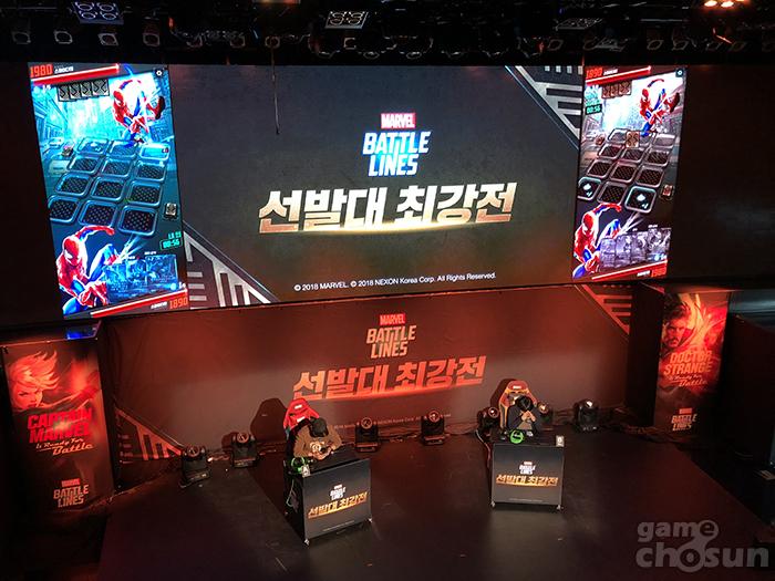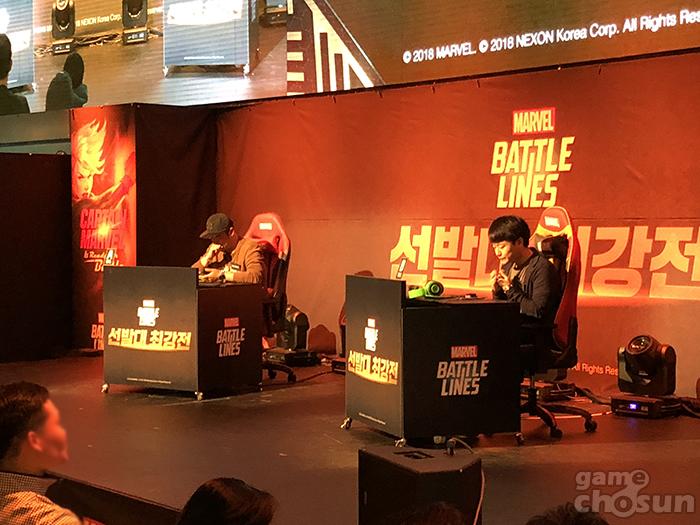 넥슨은 신작 ‘마블배틀라인’의 글로벌 출시를 앞두고, 지난 9월부터 진행된 사전체험 버전을 기반으로 선정된 이용자들이 오프라인 대전을 펼치는 ‘선발대 최강전’을 13일 넥슨 아레나에서 개최했다.