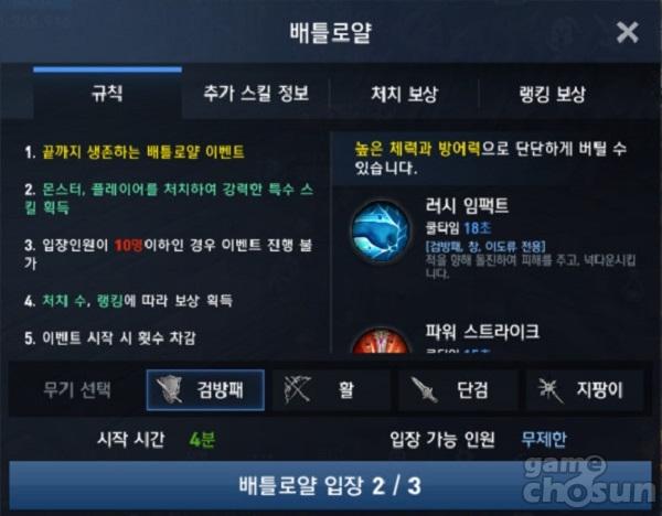 과연 배틀로얄은 pvp 콘텐츠를 즐기는 유저들에게 어떤 부분을 어필했던 것일까? <게임조선>에서는 배틀로얄을 플레이해보고 해당 콘텐츠에 대한 소감과 간단한 평가를 내려보았다.