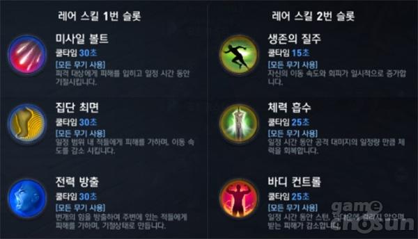 배틀로얄 전용 레어 스킬 목록 = 게임조선 촬영