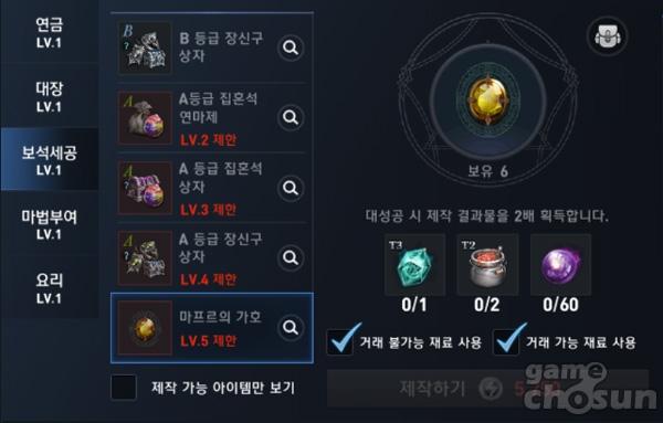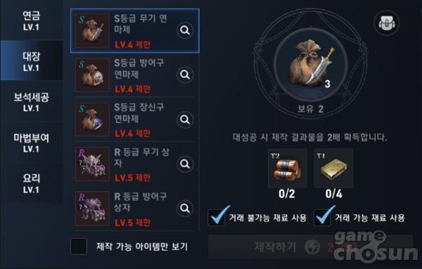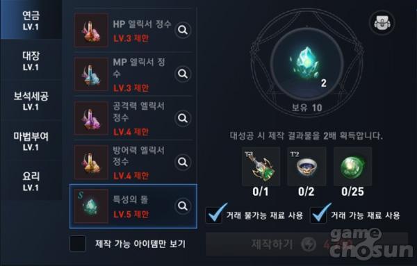 연금 전문 기술 주요 제작 품목 = 게임조선 촬영