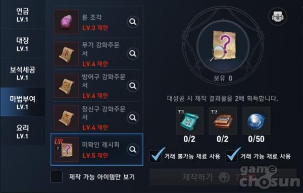 마법부여 전문 기술 주요 제작 품목 = 게임조선 촬영