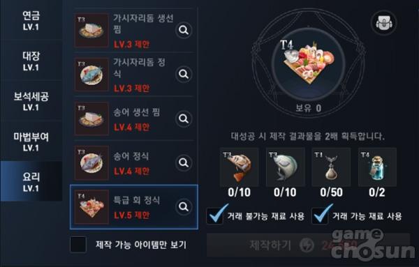요리 전문 기술 주요 제작 품목 = 게임조선 촬영