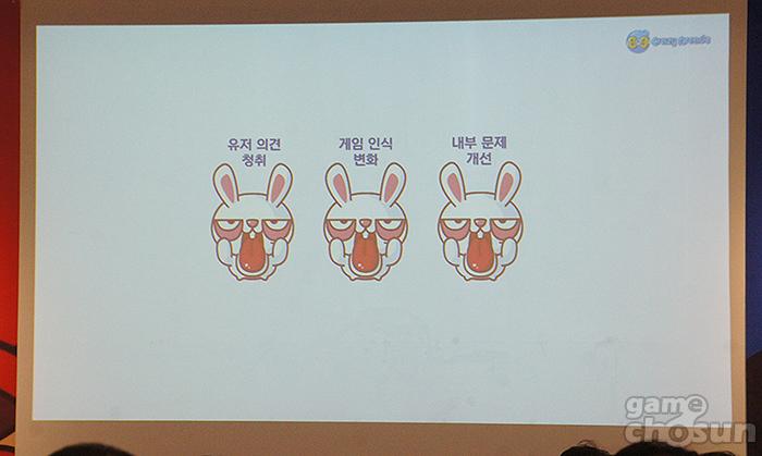 프레젠테이션은 이용자 의견 청취, 게임 인식 변화, 내부 개선문제 3가지로 나눠 진행됐다. 각 항목별로 ‘크레이지아케이드’에서 준비하고 있는 사항이 공유됐다.