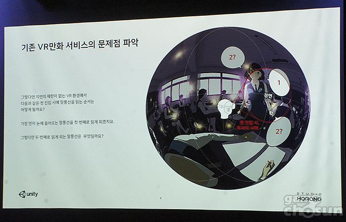 발표에 앞서 최종호 대표는 “VR웹툰인 스피어툰을 제작하면서 기존 VR웹툰의 문제점을 발견했다. 이 문제점을 해결하기 위해 유니티 엔진으로 VR웹툰 제작 도구인 스피어툰 메이커를 개발하게 됐다.”라고 VR웹툰 제작 도구 개발 계기를 밝혔다.