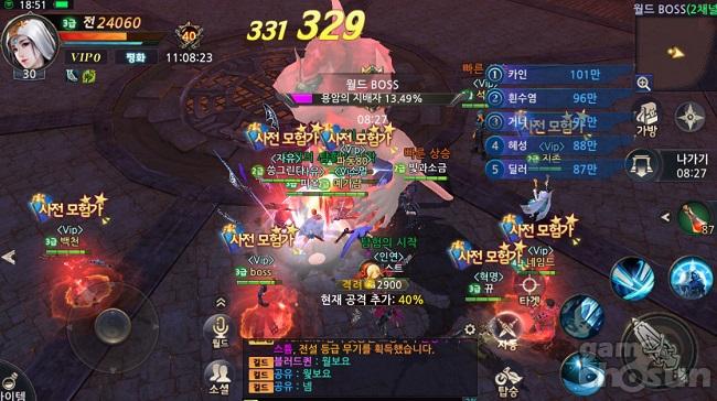 함께 힘을 합쳐 보스를 처치하는 월드 레이드 콘텐츠 = 게임조선 촬영