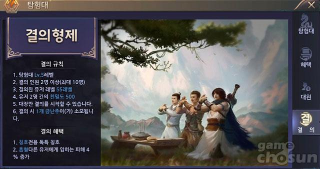 이러한 소셜 콘텐츠는 길드에 먼저 가입, 이후 길드 내 운영 중인 탐험대에 가입, 이후 탐험대 내에서 결의를 맺는 순서로 진행된다.
