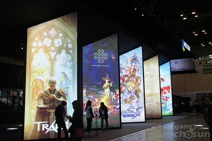 부스 왼쪽과 오른쪽에는 이런 방식으로 시연게임을 알리고 있다 = 게임조선 촬영
