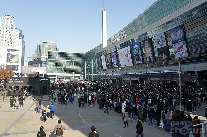 입장을 기다리는 관람객들이 대기현장을 가득 메웠다 = 게임조선 촬영