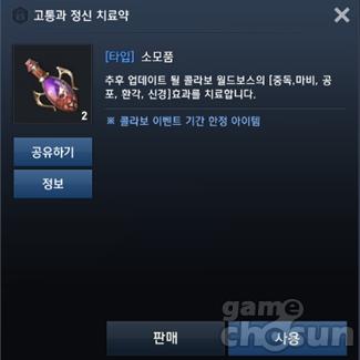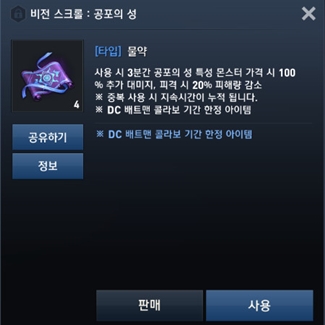 공포의성 공략에 큰 도움을 주는 전용 소모품 = 게임조선 촬영