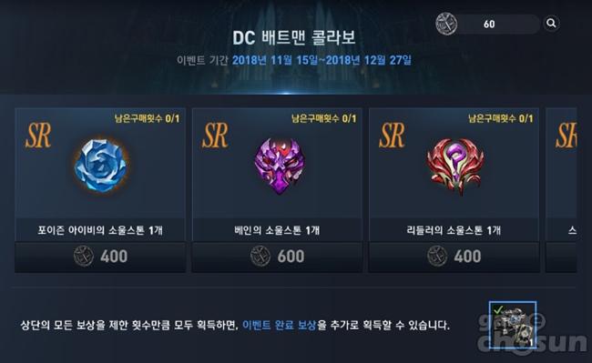 배트맨의 각종 빌런을 테마로 하는 코어 목록 = 게임조선 촬영