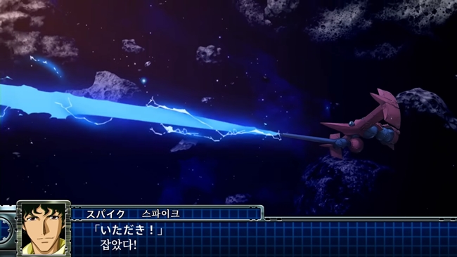 이번 참전작 중에서는 성전사 단바인과 함께 몇 안되는 판타지 계통 기체인지라 화려한 연출이 볼거리입니다