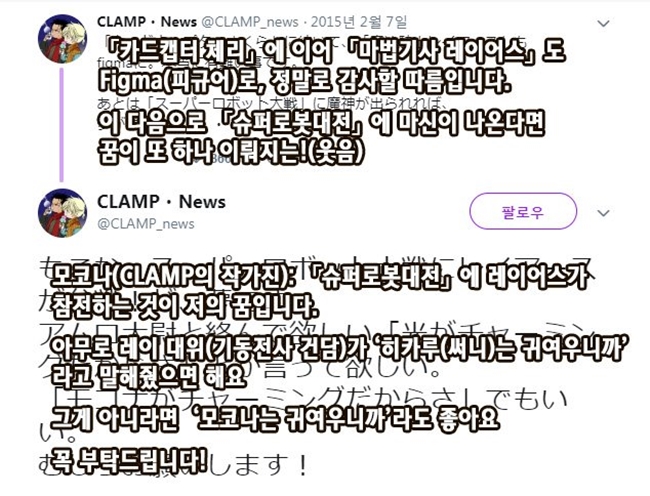 CLAMP의 공식 트위터를 보면 원작자들도 슈퍼로봇대전에 참여하고 싶어 하는 열망이 크다는 것을 확인할 수 있었습니다