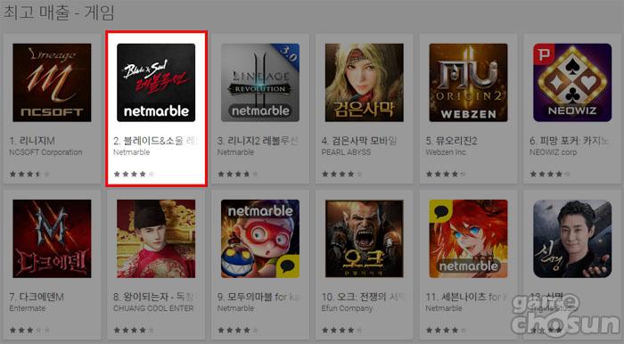 [게임조선=조상현 기자] 넷마블(대표 권영식)에서 서비스하는 모바일 MMORPG '블레이드앤소울 레볼루션(이하 블소 레볼루션)'이 구글 플레이 최고 매출 2위를 달성했다.