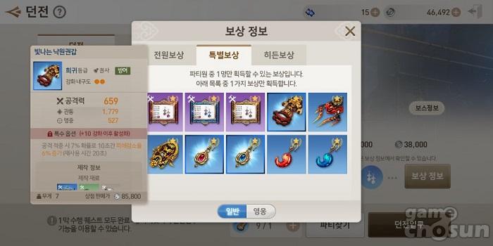 40레벨 4인던전서 특별보상으로 등장하는 상급(빛나는) 무기 = 게임조선 촬영
