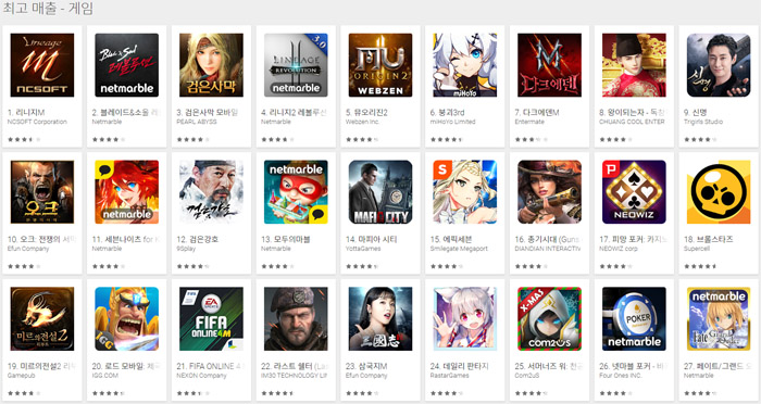 지난 6일 정식 서비스를 시작한 ‘블레이드앤소울레볼루션(이하 블소 레볼루션)’은 출시 이후 최고 매출 순위 2위를 꾸준히 유지하고 있으며, 지난 13일 출시한 슈퍼셀의 신작 '브롤스타즈'가 18위를 기록하며 흥행 반열에 이름을 올렸다.
