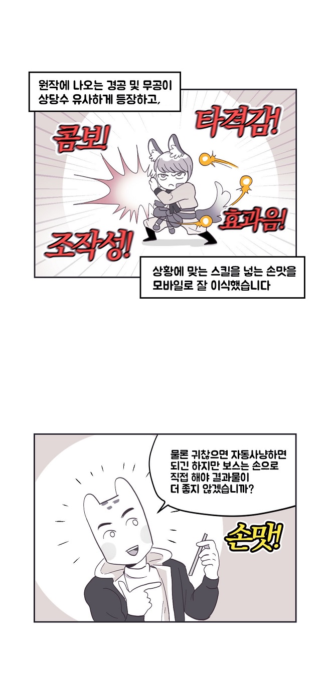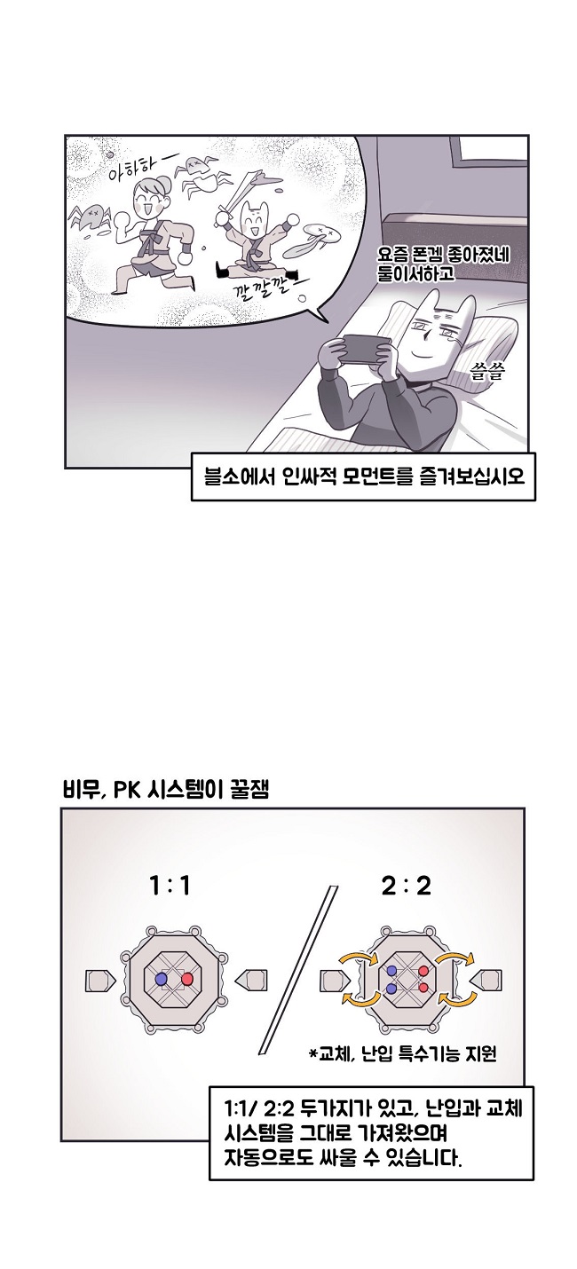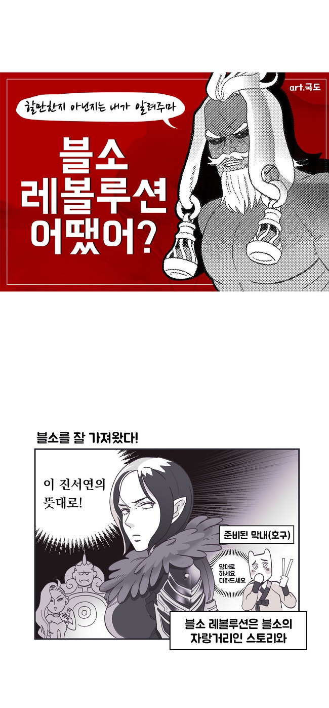 아래는 웹툰 작가 '국도'의 <블소레볼루션 어땠어?> 작품이다.