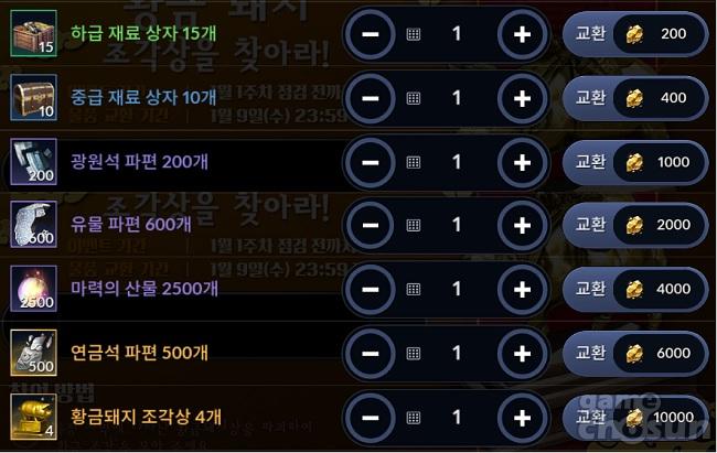 황금 조각으로 교환할 수 있는 아이템 리스트 = 게임조선 촬영