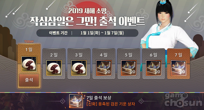 신규 이벤트 '작심삼일은 그만!' 출석= 게임조선 촬영