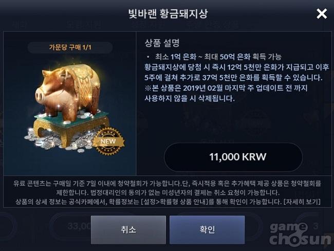 최대 50억 은화를 얻을 수 있는 '빛바랜 황금돼지상' 상품 = 게임조선 촬영