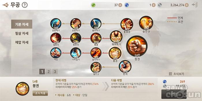 이외에도 검사의 모션 스킵이나 무공 초식, 장비옵션, 수호령 특수 옵션 등 다양한 무공의 연계기 조정이 이뤄진다.