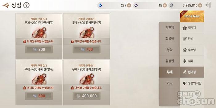 현재 4개의 무게 증가권이 있다. = 게임조선 촬영