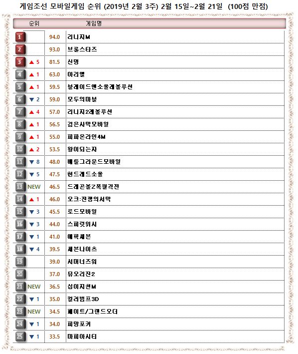 2019년 2월 3주 ‘게임조선’ 모바일게임순위
