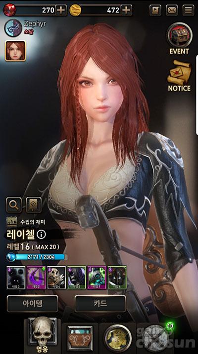 시작하자마자 주인공이 죽는다. 그리고 누가 봐도 배경이 좋지 못해 보이는 녀석과 계약을 맺는다. 죽었다 살아난 스토리라서 지치지 않나 보다. 이 게임, 피로도가 없다. 편집부에서 왜인지 외모 평가는 하지 말라던데 레이첼(주인공, 영웅) 모델링이 매우 잘 표현됐다. 공식 일러스트보다 인게임 모델링이 더 예쁘고 매력적인 게임은 오랜만.