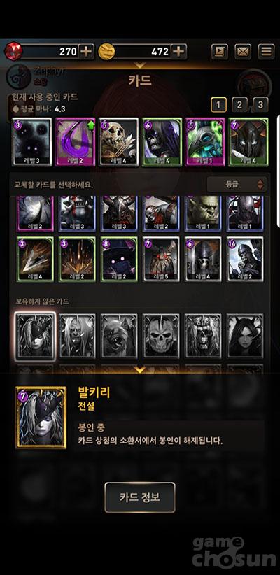 다크판타지 배경, 최적화 문제로 무겁게 느껴질 뿐 사실 콘텐츠 볼륨은 캐주얼하다. 보통의 정통 CCG 는 일간 퀘스트를 진행하고 나면 다른 플레이어와의 무한한 대전만이 남는다. 그런데 그 대전이 재미있다. 이 게임이 내세우는 전략은 특이하다. 또, 재미있다. 무리하지 않았다는 점에서 높은 점수를 주고 싶다. 하지만 주인공과 소환수의 성장 외 플레이어를 붙잡아놓을 만한 것이 아직 보이지 않는다.