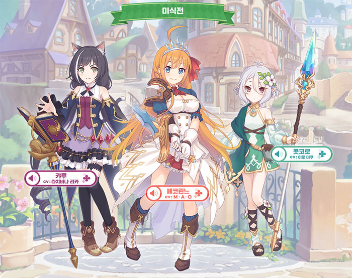 사전예약 페이지에서 각 캐릭터의 음성을 들어볼 수 있다. = 프린세스커넥트 소개 페이지