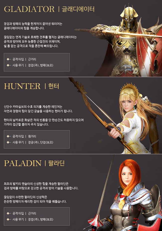 덕분에 이용자가 캐릭터를 생성할 시에 원했던 전투 스타일을 유지한 채, 계승을 통해 캐릭터 성장이 가능해진 것이다. 현재는 투신(격투가), 발키리(팔라딘), 레인저(헌터), 워리어(글래디에이터) 등 총 4종의 캐릭터만이 계승이 가능하지만, 추후 업데이트를 통해서 타 클래스 또한 계승이 추가될 예정이다.