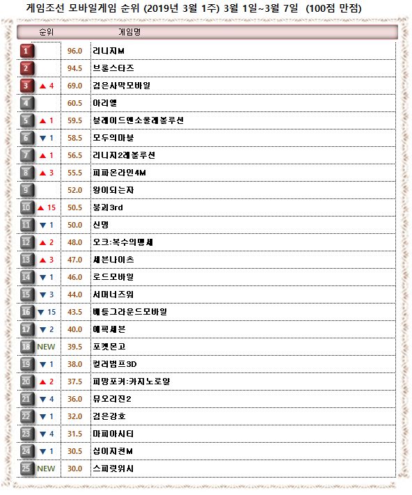 2019년 3월 1주 ‘게임조선’ 모바일게임순위