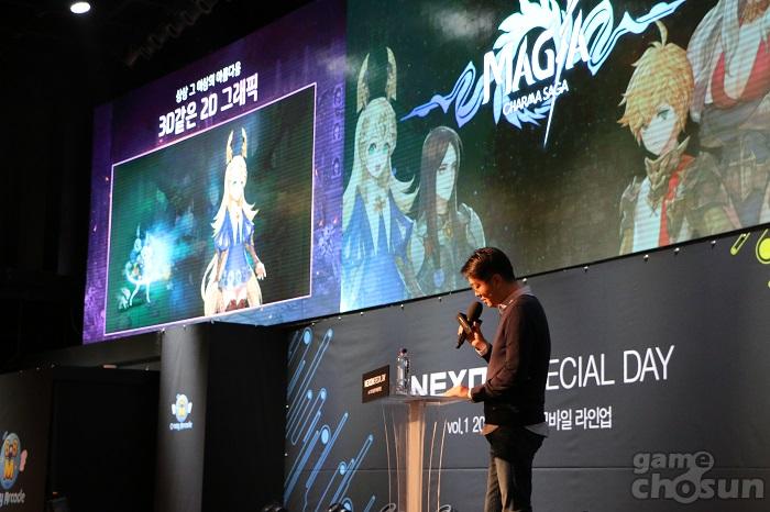 마기아:카르마사가를 소개 중인 나승균 실장 = 게임조선 촬영