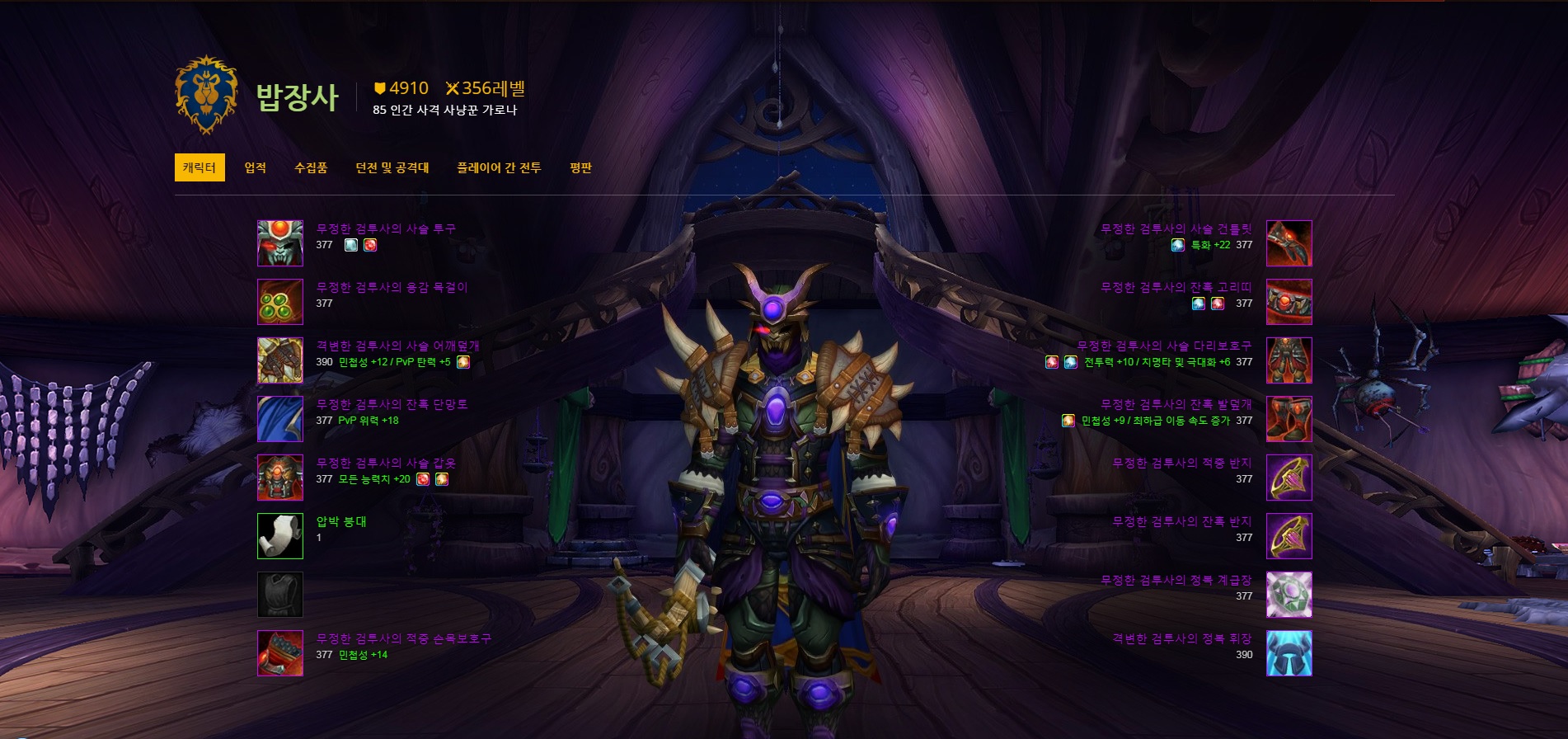 한편, 백종원읜 가로나 서버에서 얼라이언스 진영 인간 사냥꾼 '밥장사'를 육성했으며 아이템과 업적 상황으로 보아 확장팩 '대격변'의 마지막 공격대 던전인 용의 영혼을 정복한 이후 게임을 쉬고 있는 것으로 확인되고 있다.