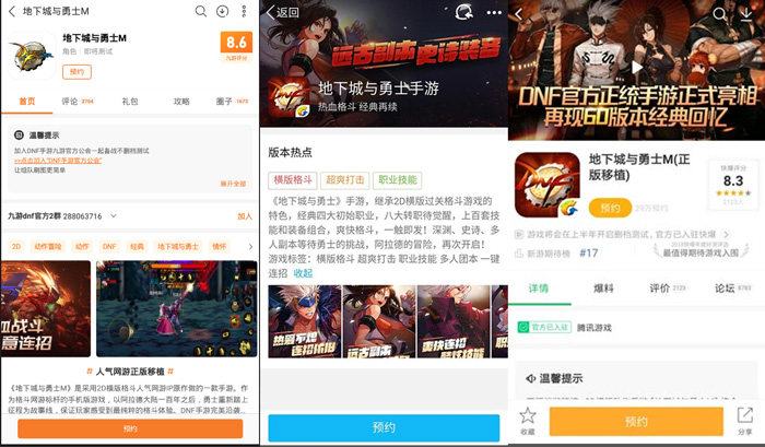 중국의 각종 모바일 플랫폼에서 던전앤파이터모바일의 사전예약을 진행하고 있다 = 게임조선 캡처