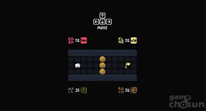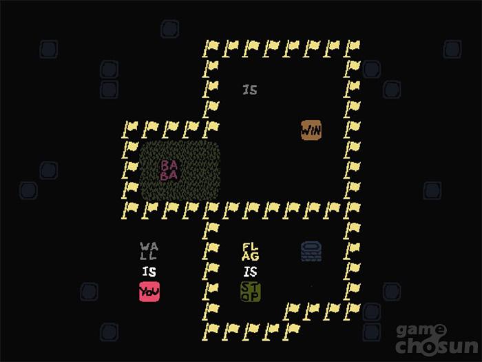이 게임은 YOU 가 WIN 에 도착해야 하는 퍼즐 게임이다. 언뜻 화면만 봐서는 국내서 '창고 지기'라 불린 바 있던 '소코반'과 비슷한 형태의 게임인가 싶었지만 단순한 룰 하나가 추가되면서 완전히 궤를 달리하는 게임이 됐다. 바로 퍼즐 게임임에도 스스로 룰을 만들고 파괴할 수 있다는 것. 사실 말로 해서는 뭔 소린지 잘 모른다. 기자도 그랬다.