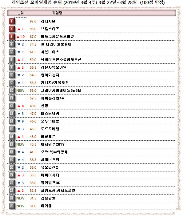 3월 4주 게임조선 모바일게임순위