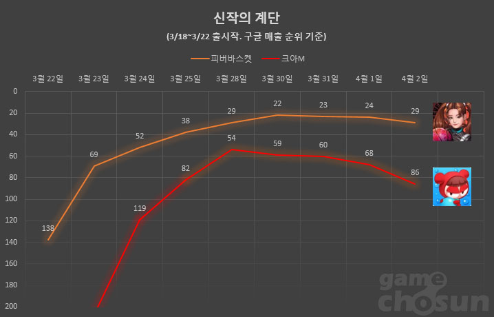 지난 주(3/18~3/22 출시작) 짚어봤던 신작 게임 2종 현황을 간단히 들여다본다.